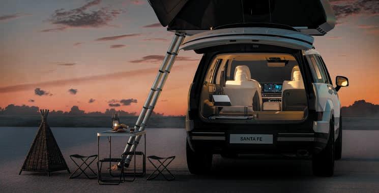El nuevo Santa Fe ha sido cuidadosamente diseñado para maximizar la capacidad de carga y la comodidad, tanto en entornos urbanos como fuera de la ciudad. Se destacan características como un piso plano mejorado para la tercera fila de asientos y un portón trasero excepcionalmente grande, que, según la marca, puede servir como "una terraza para cuándo y dónde se necesite".