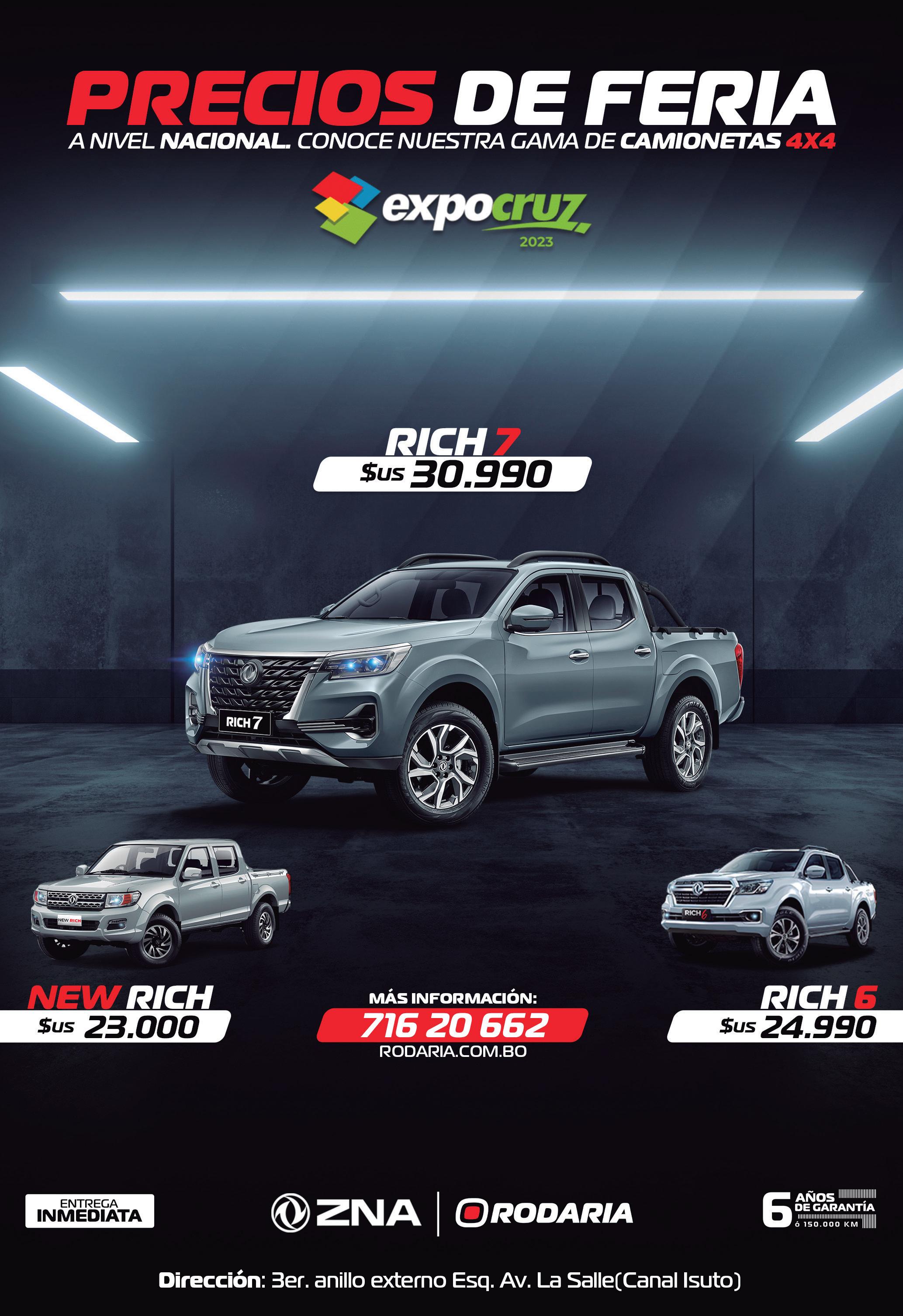 Potencia, tecnología y confort La camioneta Rich 7 de ZNA, es la opción perfecta para aquellos que buscan velocidad, potencia, capacidad de carga, confort, suavidad al volante y seguridad al conducir.