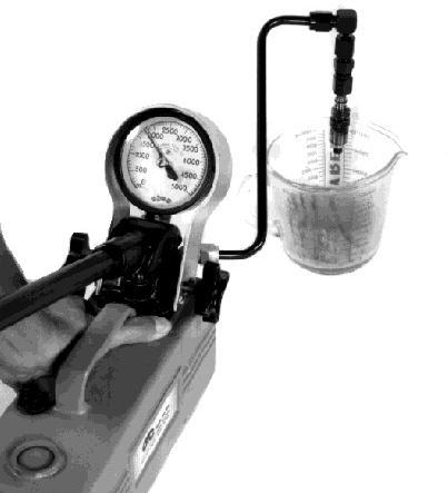 3. Assembly test gauge as shown and install on end of fuel hose from transfer pump.