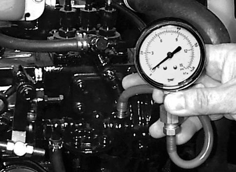 6. Crank engine with starter for 5 – 10 seconds while watching test gauge. Do not overheat starter.