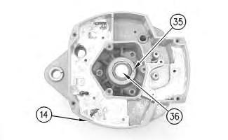 11.Install the coil and support (34) in housing (14). Guide the field leads and the grommet through the hole as the coil is installed in housing (14). Install 3 screws (33) .