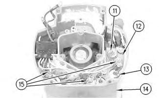 10.Remove 3 nuts (15). Disconnect 3 stator phase leads. Disconnect 3 phase leads. Disconnect 6 diode leads.