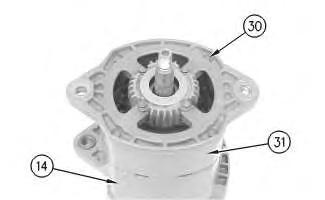 14.Install Insulator (29). Install the heat sink and diode assembly (12) in housing (14) .