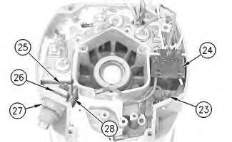 16.Install alternator output terminal (27). Install insulator (26). Install the nut and washer (25) .