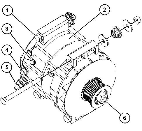 1.If necessary, install the pulley on alternator (2). Install nut (6). Tighten the nut to a torque of 127 ± 10 N m (94 ± 7 lb ft).