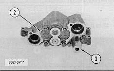 3. Remove retainer (3) for the bypass valve. Remove the spring and the bypass valve.