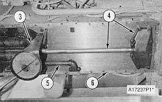 4. Install two 3/8 in 16 NC Guide Pins 6 in long in the cylinder block. Put the oil pan (5) in position on the cylinder block. Install all but two of the bolts that hold it. Remove the two guide pins. Install the last two bolts.