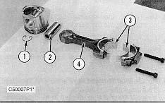 3. Remove pin (2) and connecting rod (4) from the piston.