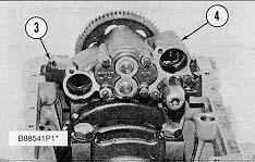 5. Make an adjustment to the valves to have a clearance of 0.38 mm (.015 in) for intake and 0.76 mm (.030 in) for exhaust. Tighten the locknuts for the valve adjustment screws to a torque of 28 ± 4 N·m (21 ± 3 lb ft).