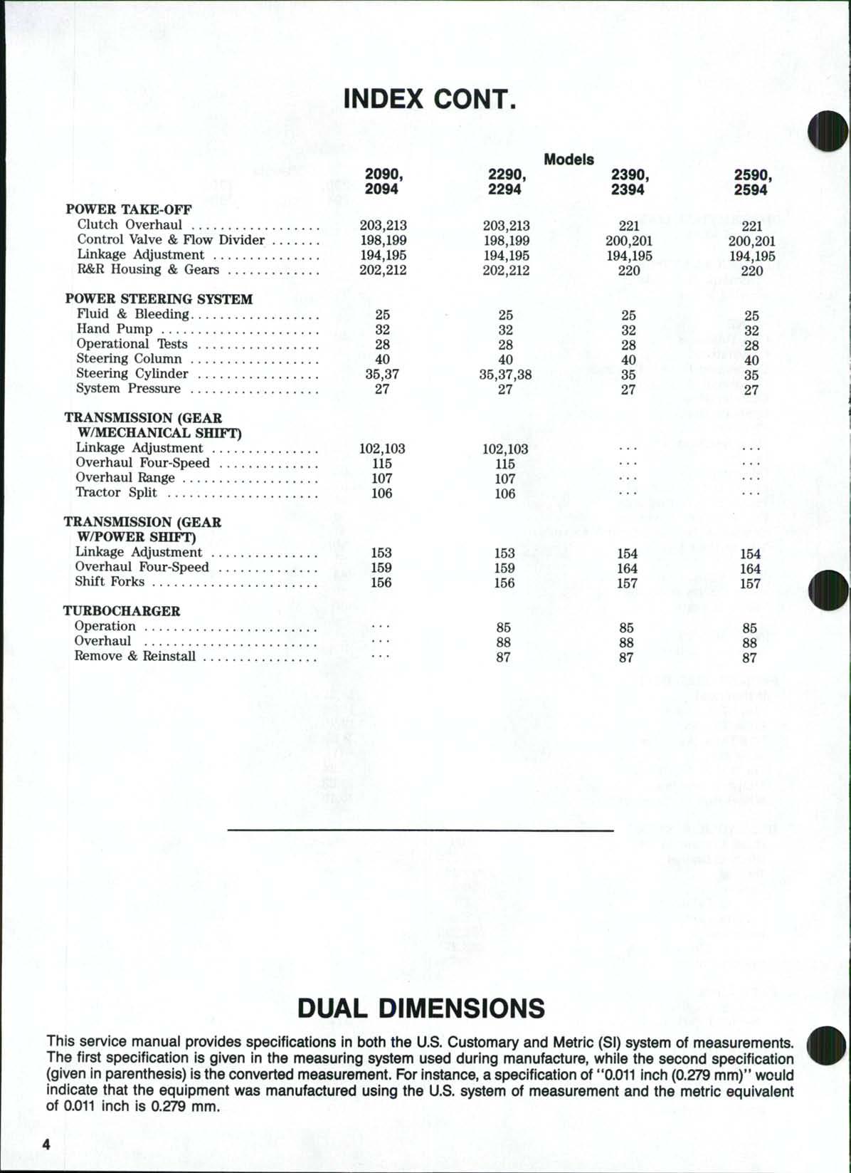 **Models 2394 and 2594 equipped with power shift High/Low unit have 24 forward speeds. All other power shift models have 12 forward speeds.