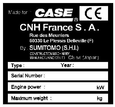 When placing a parts order or making a request for information or assistance, always give you CASE Dealer the type and serial number of the machine concerned.