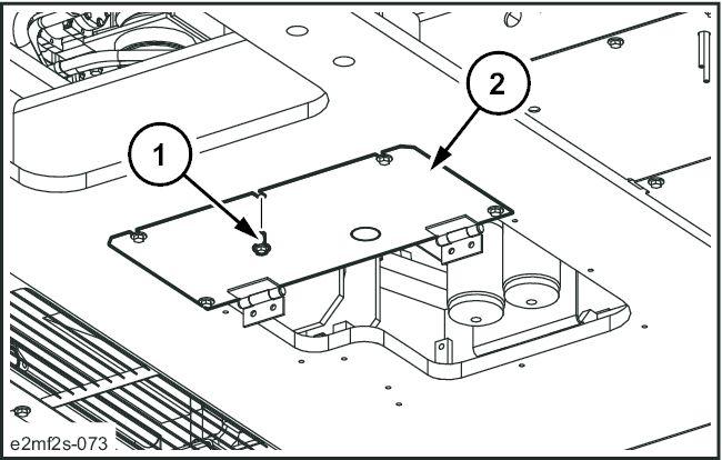 Use a wrench [ ] remove the 2 bolts (1) , and then remove the box cover (2) E2MF2S - 078 Remove the connectors (1) the • W rap the removed connectors plastic after tying them together prevent any entry water , dust dirt. 8001C043