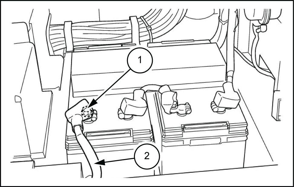 26. Remove the cap (1) , use a wrench [ ] remove the nut (2) , and then remove the alternator wiring (3)