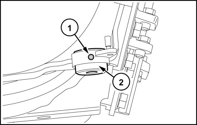 If after refitting the DPF filter you find a slight misalignment with the axis of the turbine, it is possible to make a correction. On the two screws fixing the filter to the cradle there are two threaded bushings (2) held in position by a grub screw (1) Loosen the grub screw with an Allen wrench, screw the bushing in or out by the amount necessary to correct the misalignment, retighten the grub screw and fix the support.