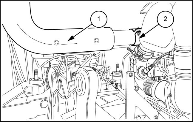 17. Loosen the hose (2)clamp DPF and detach the return pipe (1)