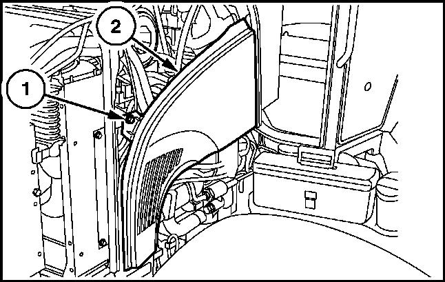 46. Remove the viscous coupling (1), where applicable, together with the fan (2)