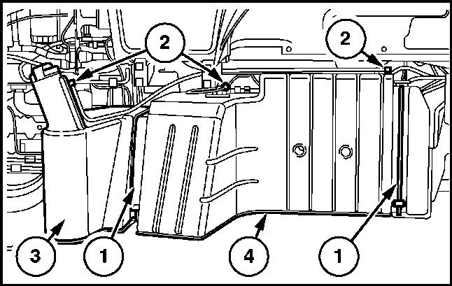 10. Detach the tank retaining straps (1), mark and detach the fuel pipes (2) and extract the fuel tank (3) Remove also the bottom tank guard (4)