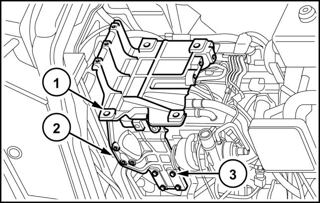 3. - Take out the bolts (1) and the related compressor clutch dust cover.
