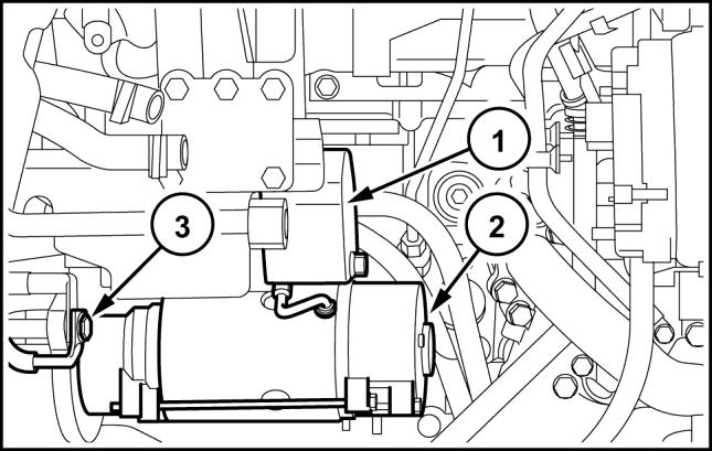 32. Detach the clamp bolt (3) then remove the ground cables of the engine and battery system, remove the other clamp bolts of the motor and remove it.