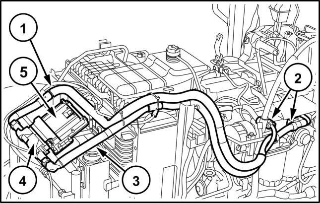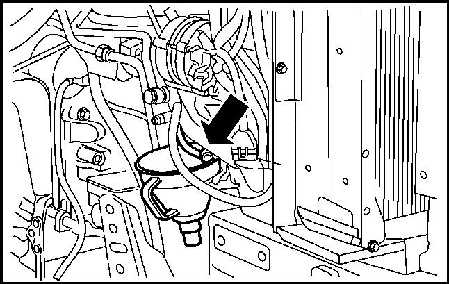 15. Loosen the union of the cab heater radiator coolant return pipe, drain and collect the engine coolant.
