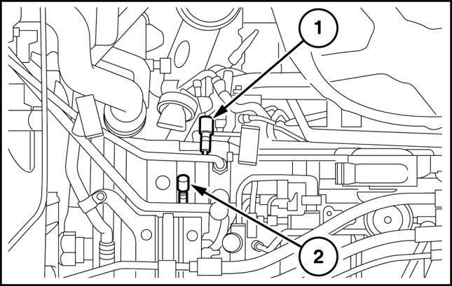 24. Detach the power steering spool valve outlet pipe on the gearbox spool valve (2), on the same filter detach the gearbox spool valve supply pipe (1).