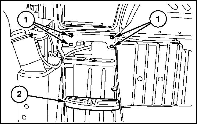 8. Unscrew the fixing bolts (1) and remove the righthand steps (2).