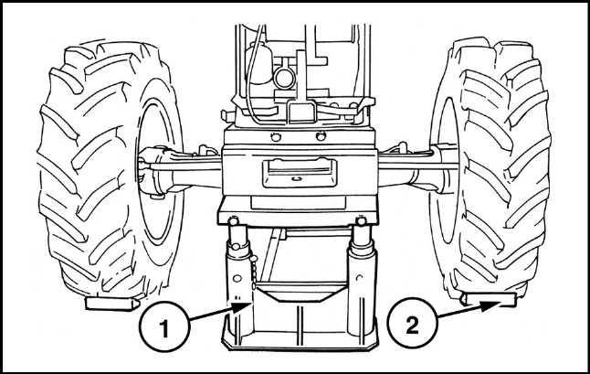 42. Position a fixed stand (3) under the support of the groove (1) of the front axle drive placing a wooden plug between parts (3) and (1)