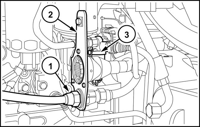 36. Detach the bracket (2) supporting the cab connectors, cab power and cup filter (3), disconnect the pipe that joins the latter to the mechanical priming pump on the sediment filter.