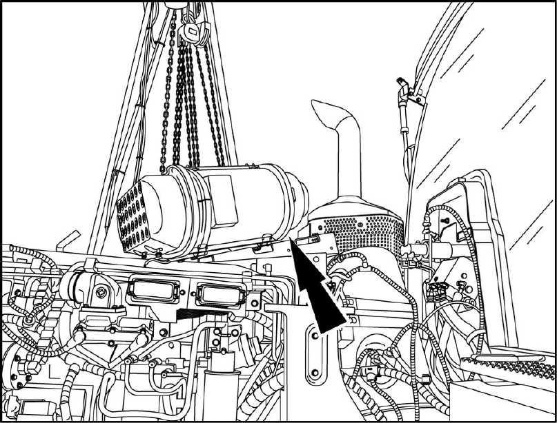 10. With tension the lifting strap, remove the mounting bracket bolts (1) for the DOC from both sides the bracket (left hand side