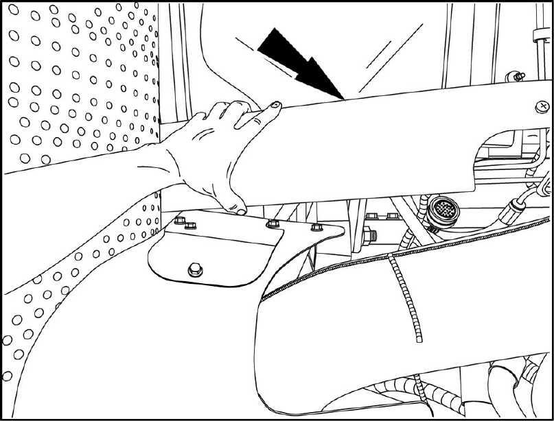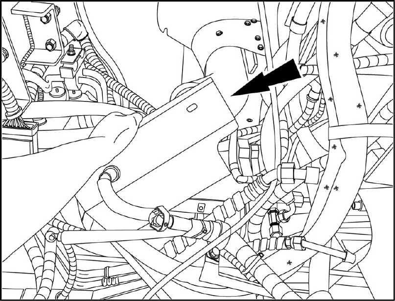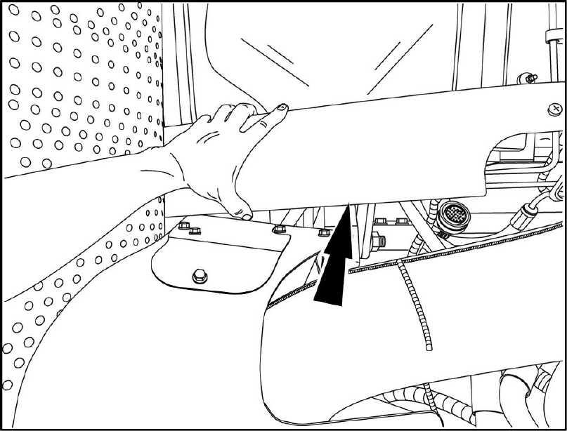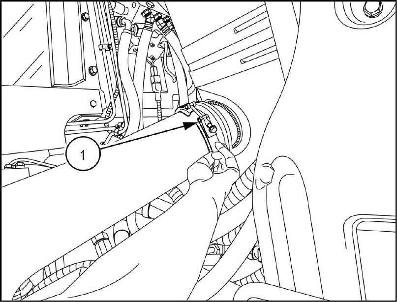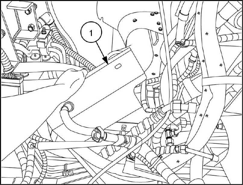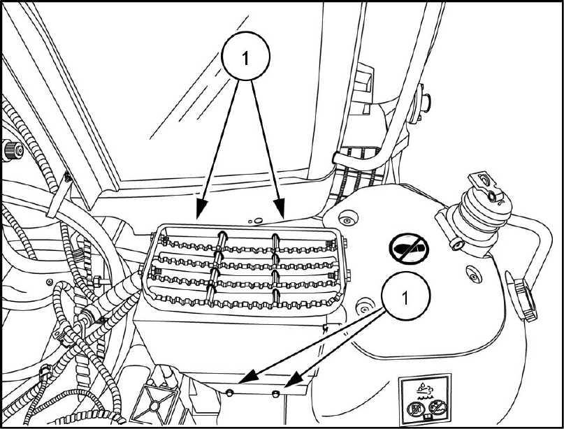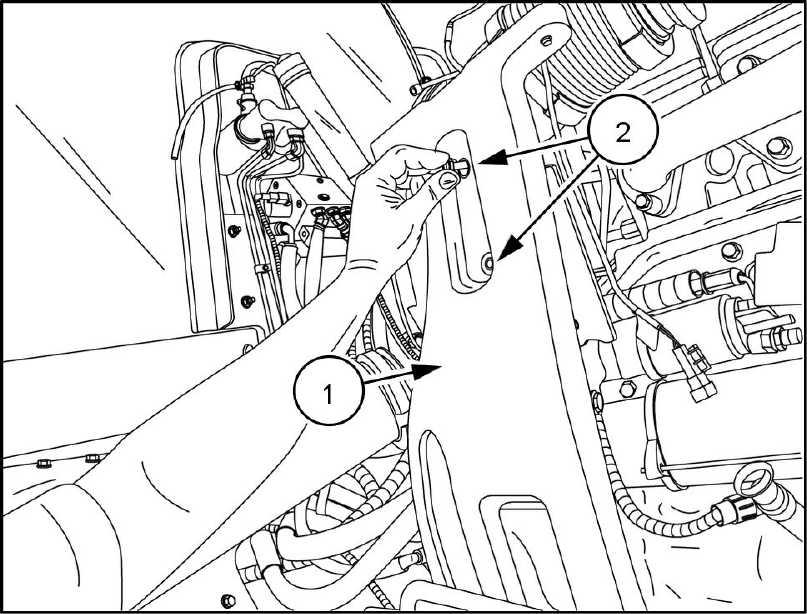 Remove the bolts (1) for the mounting bracket for the air cleaner / DOC from the hood support