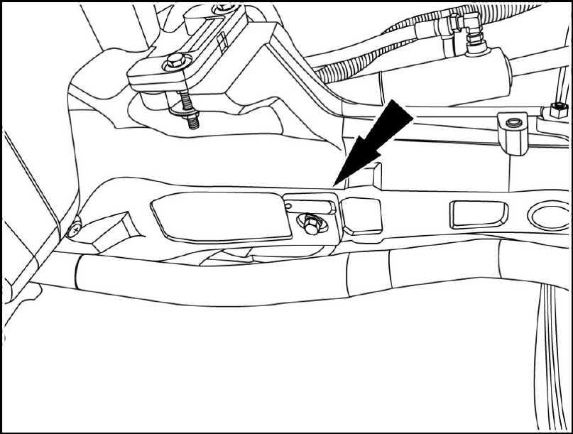 Remove the mounting bolts (left hand side shown) which secure the hood support bracket front frame and remove the bracket. Repeat for right hand side. RAIL13TR01608AA
