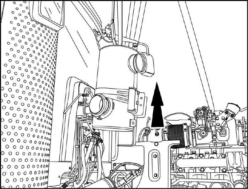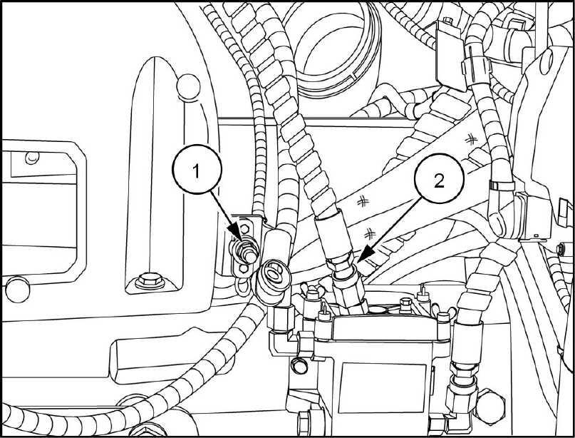 Disconnect the V auxiliary connector (1) and the inlet fuel line from the fuel separator (2)