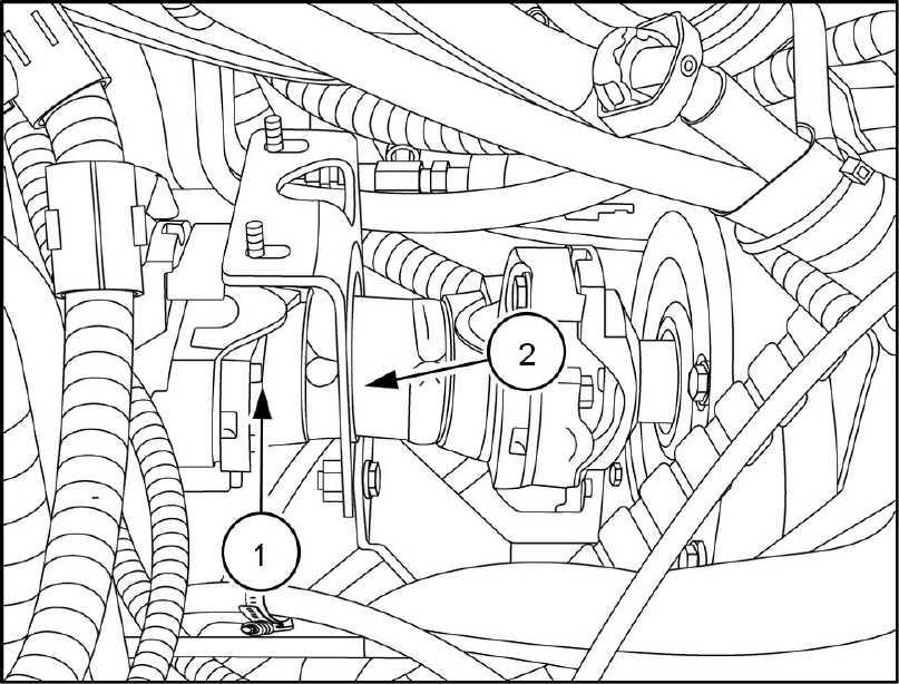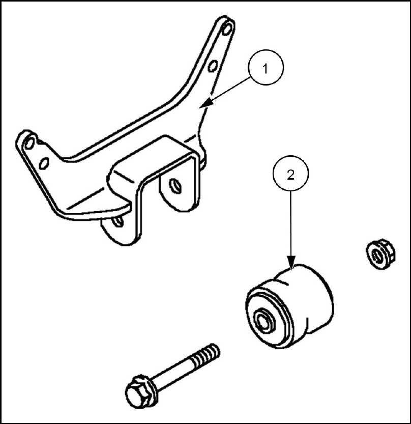 Inspect the front engine support (1) and isolation mount (2) for damage / and wear Replace necessary