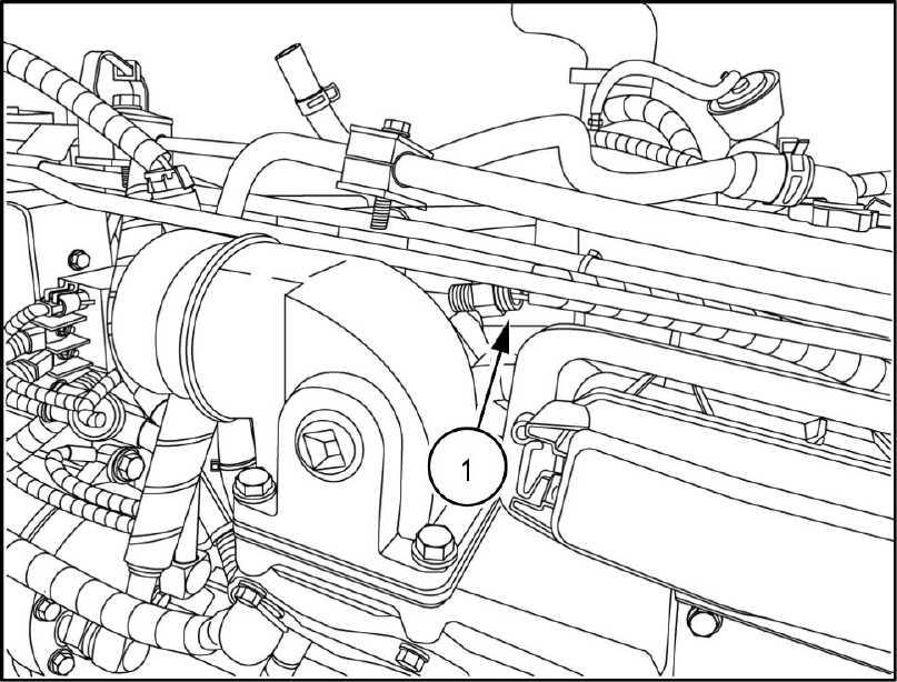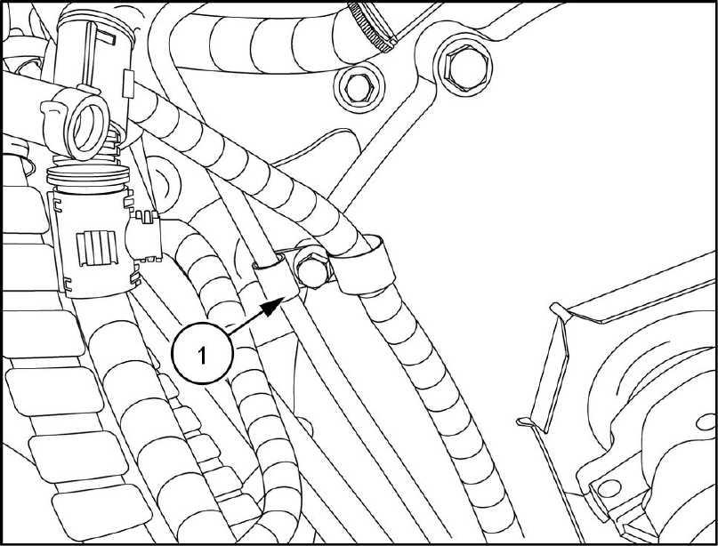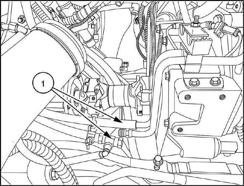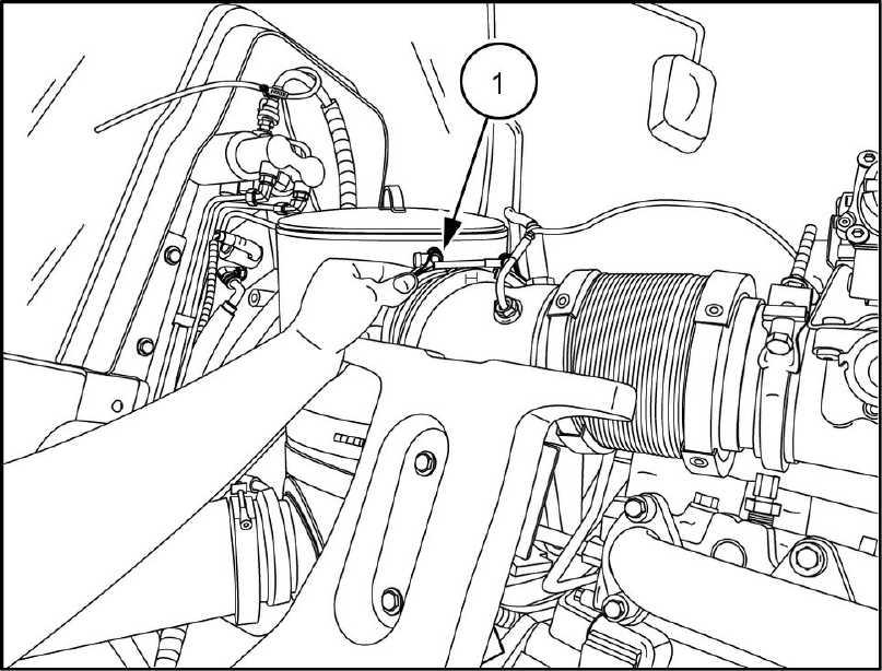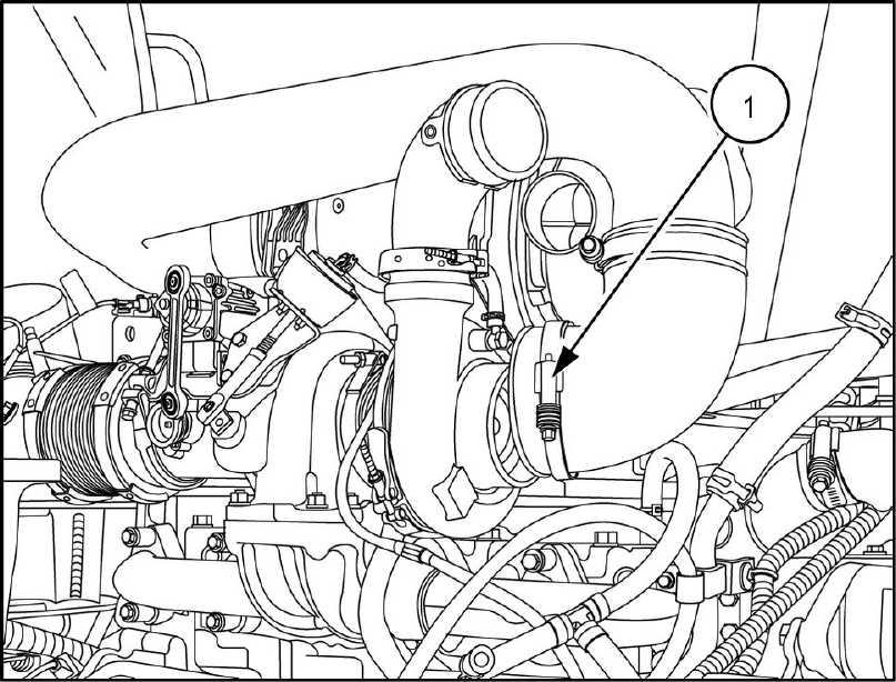 Disengage the clamp and remove the air cleaner outlet hose (1) from the turbocharger