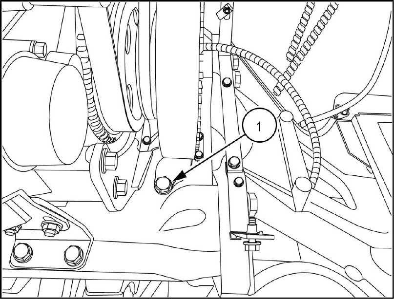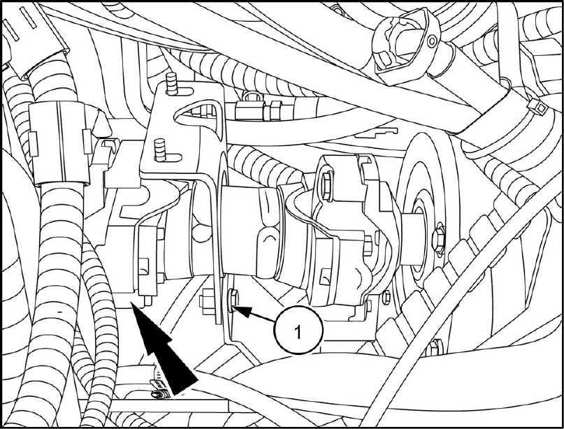 30. Remove the two bolts (1) from the isolation clamp for the front engine mount (right hand side
