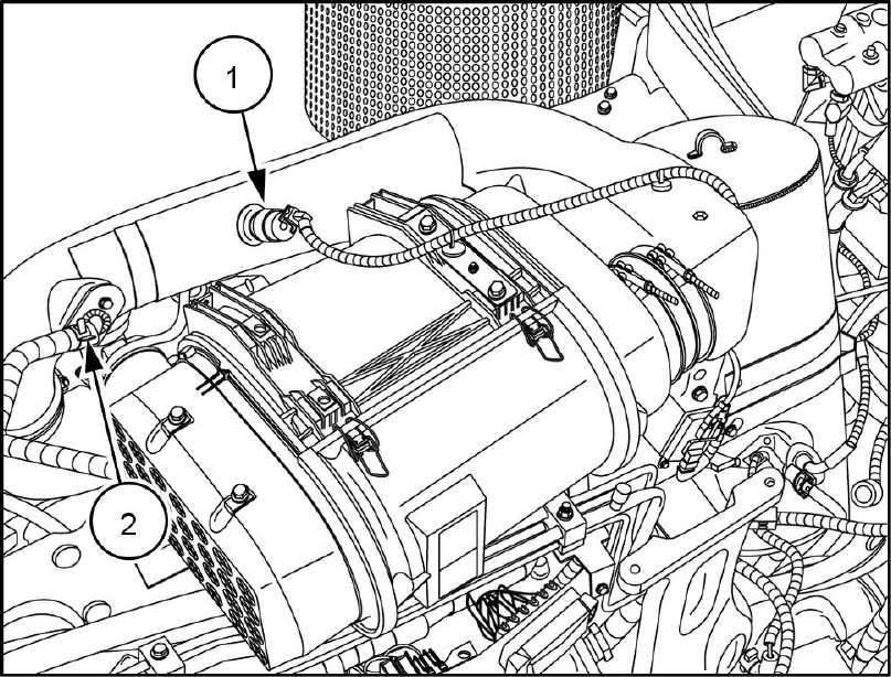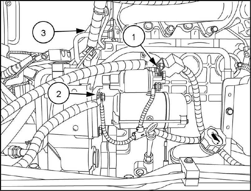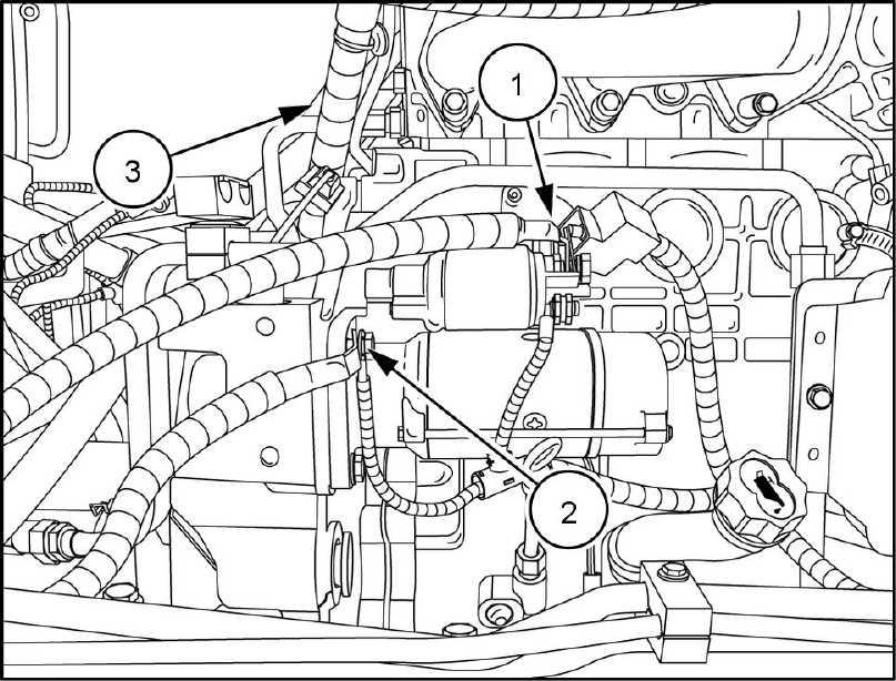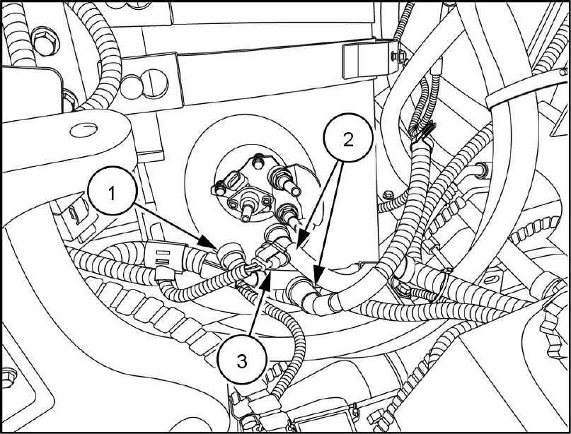 Disconnect the Diesel Exhaust Fluid (DEF) / AdBlue® line (1) , the coolant supply and return lines (2) and the electrical connector (3) from the dosing Squeeze the tabs together and lift the hose straight f the fitting.