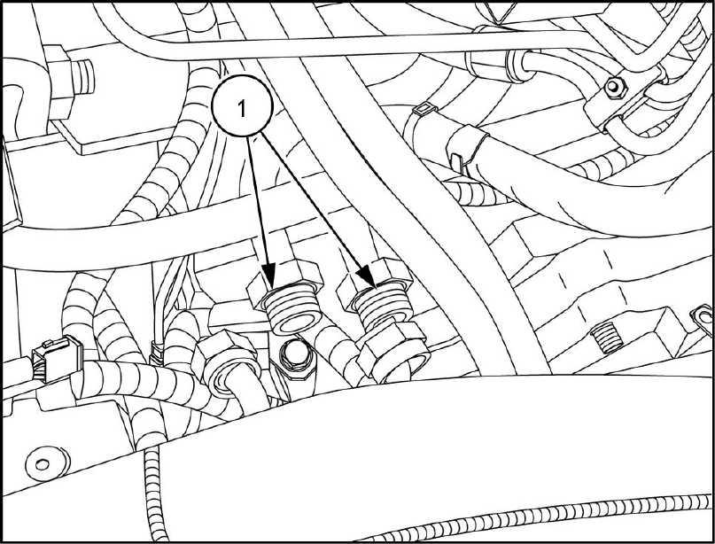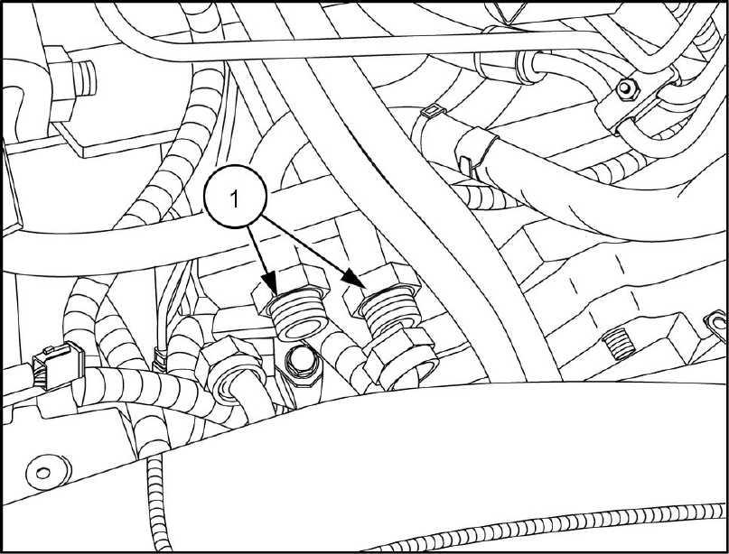 Disconnect the two hydraulic oil cooler lines (1) Cap plug all fittings and
