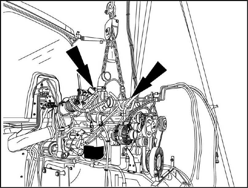 NOTICE: Check that all fittings are clean and free foreign matter during assembly Use new O - rings and lubricate them with petroleum jelly prior Properly support the engine and lower the engine into the front frame.