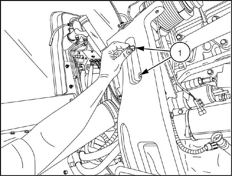 Remove the air cleaner mounting bolts (1) from each side the air cleaner bracket (left side