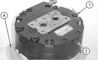 1. Fasten travel motor (1) in a vertical position on Tooling (A). The weight of travel motor (1) is approximately 82 kg (180 lb).