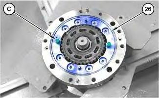 14. Insert Tooling (C) into piston assembly (26). Use a suitable prying device and Tooling (C) to remove piston assembly (26).
