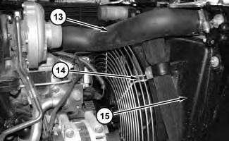 8. Remove hose (13). Remove fan guard (14). Remove fan shroud (15).