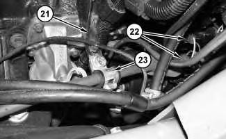 7. Connect ground strap (24). Connect harness assemblies (21) to the electric starting motor. Connect clip (22) to bracket (23).