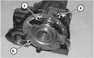 33. Adjust Tooling (K) until differential (3) is free of play and free of pressure. Tighten the lock bolt.