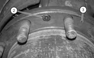 26. Install bolts (7) into differential (3). For M12x1.5 bolts, tighten bolts (7) to a torque of 145 N·m (107 lb ft). For M16x1.5, tighten bolts (7) to a torque of 300 N·m (221 lb ft).