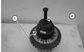 6. Install Tooling (A) in order to remove bearing cone (6) (not shown).