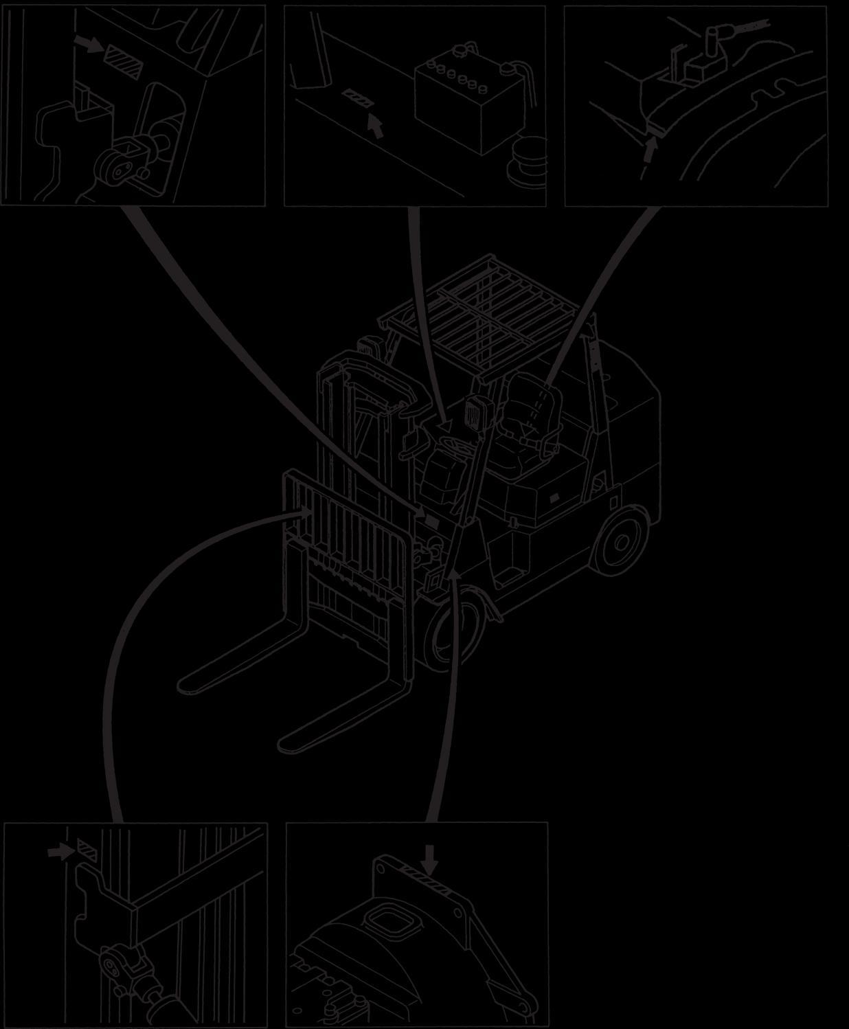 13. Disconnect battery and discharge any capacitors (electric trucks) before starting to work on truck. Hang “Do not Operate” tag in the Operator’s Compartment.