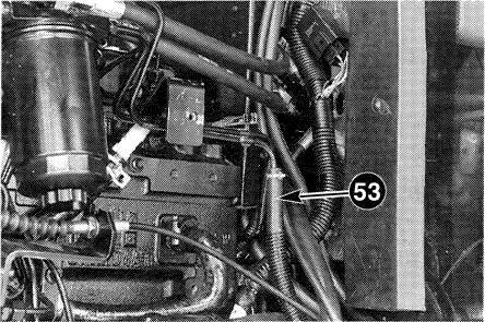 Release the hose clip and disconnect fuel return hose (53), cap the hose and tube.