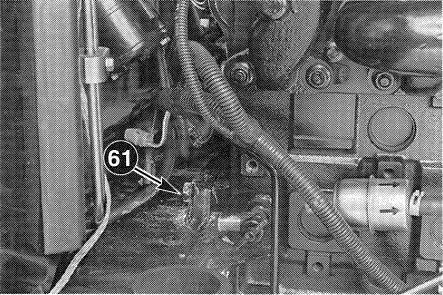 Remove top engine to transmission retaining bolts (61) and bottom bolts (62) from both sides.