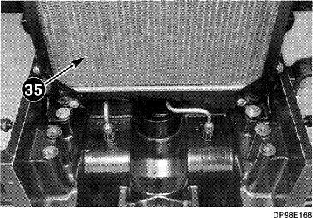 Remove the four radiator mounting bolts and remove the radiator assembly (35).